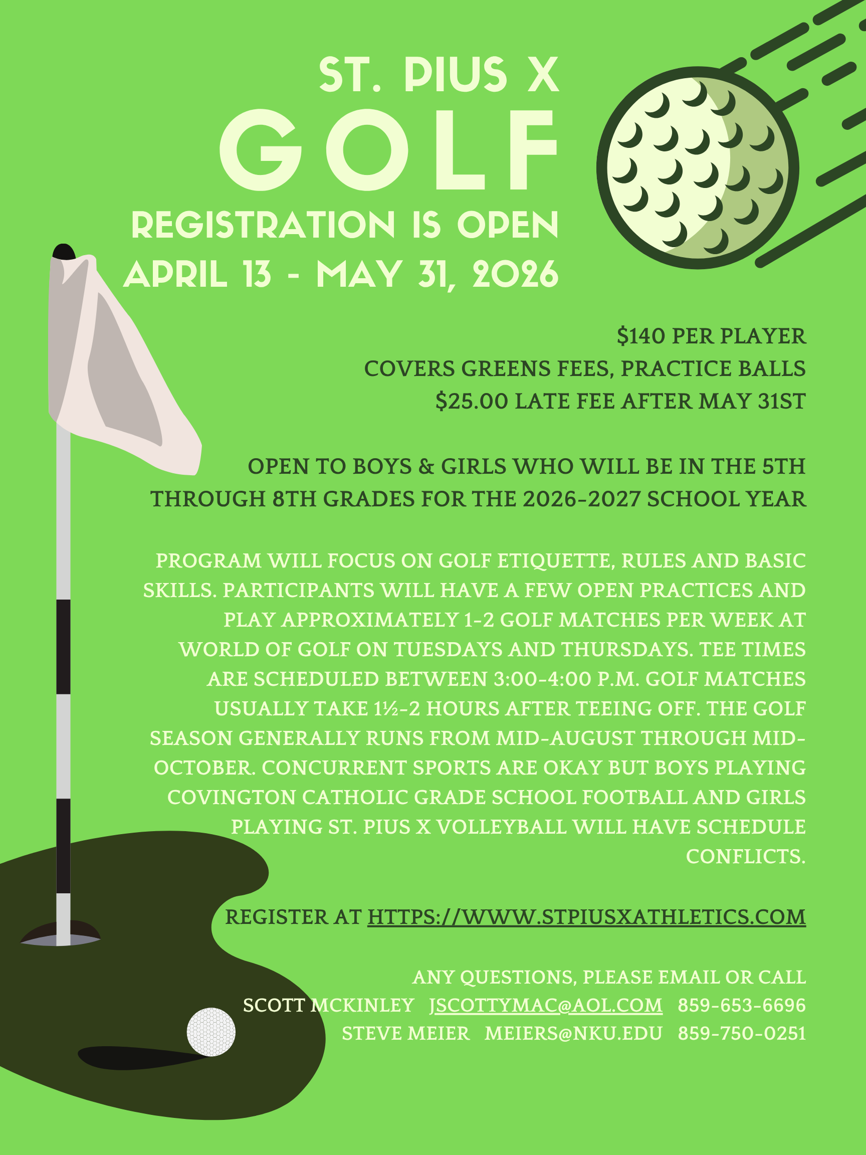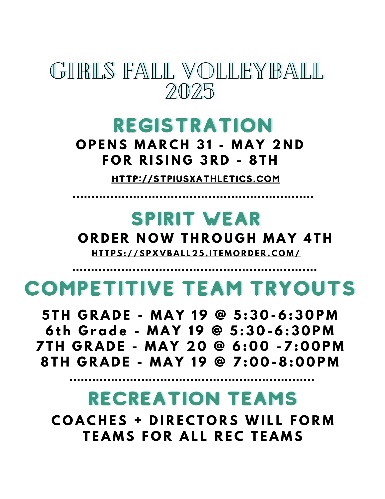 Cost per team is $85. Checks should be made payable to St. Pius X Athletic Association.